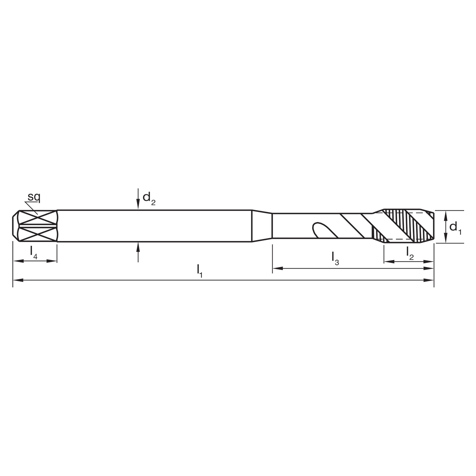 TAP T847 2BX C R45 NH+ DIN2184-1 PM-Co TiCN DIN Taps UNC, Spiral Flute (R45) Suitable for harder materials up to 42 HRC Blind holes Depths up to 3 x d1
